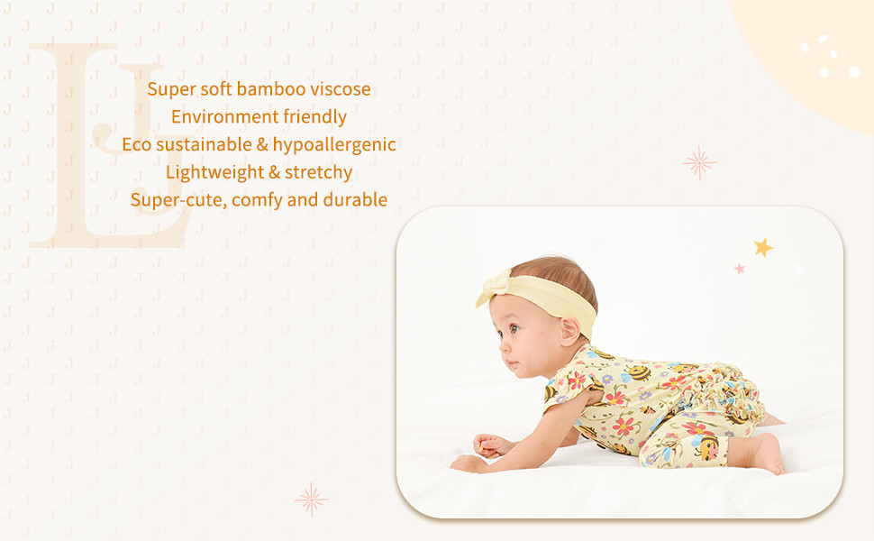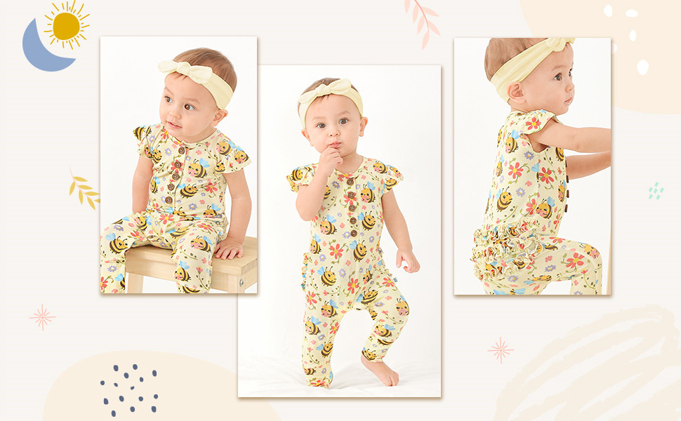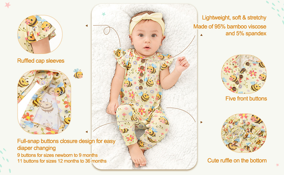 - ECO SUSTAINABLE & HYPOALLERGENIC – Made of 95% bamboo viscose and 5% spandex to provide a stretchy and comfortable fit, this baby onesie is like a loving hug for your little one’s delicate skin. With a ruffled, sleeveless design around the neckline, your baby will look adorable in this charming piece of clothing.