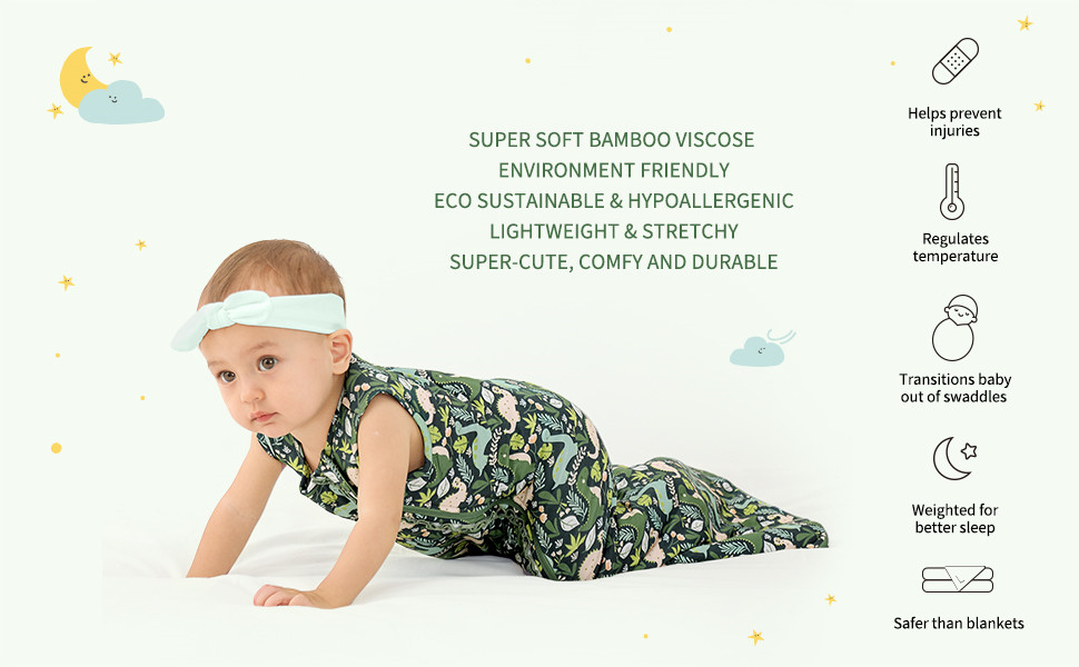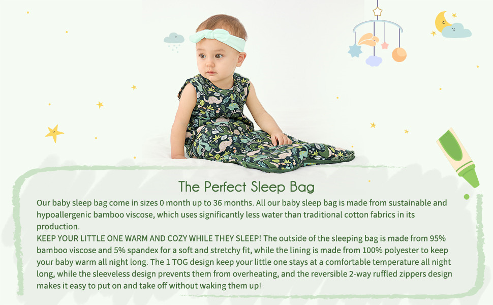- SUSTAINABLE & HYPOALLERGENIC – made from breathable & eco-sustainable bamboo viscose and eco-friendly dyes that use significantly less water and resources than traditional cotton fabric, HAPPY JAMJAMS sleep bag are perfect for baby’s sensitive skin.