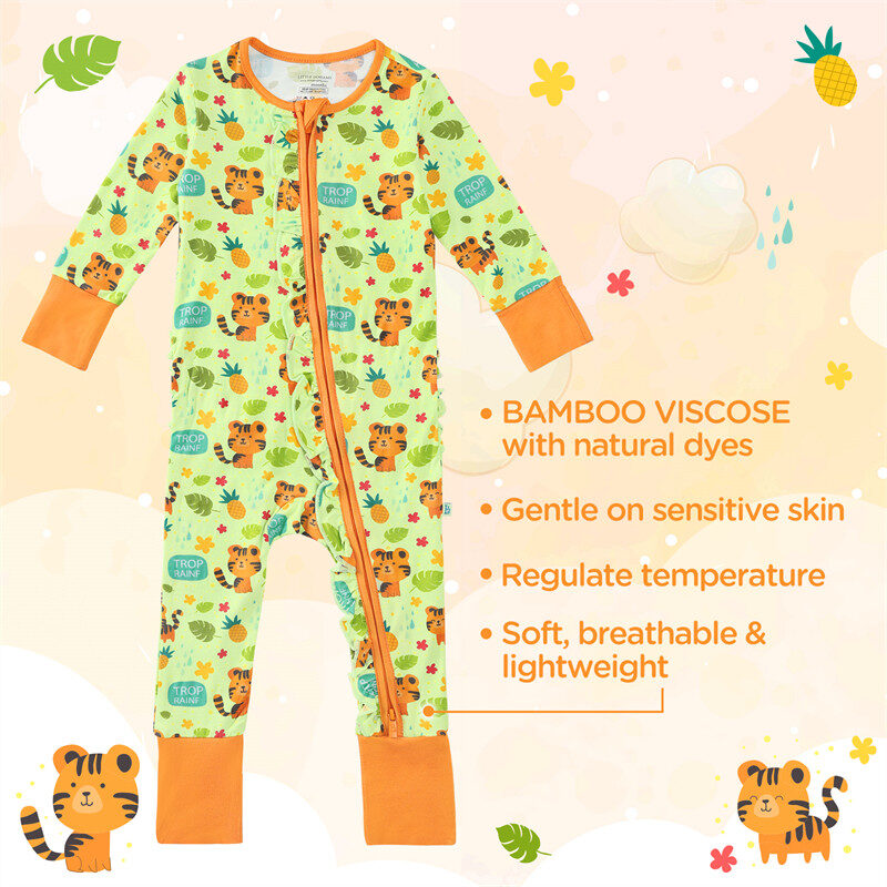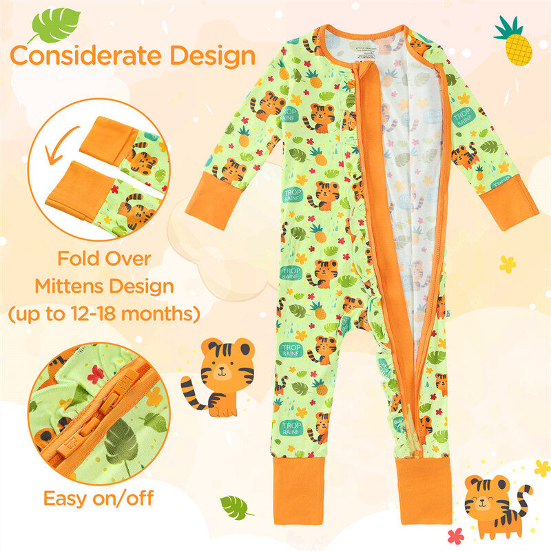 - ECO SUSTAINABLE & HYPOALLERGENIC – made from soft and breathable viscose of bamboo and environmentally friendly dyes that use significantly less water and resources than traditional cotton, HAPPY JAMJAMS one-piece rompers are perfect for baby’s sensitive skin.
