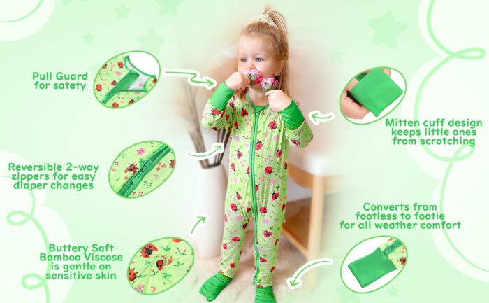 - Reversible 2-way zippers for easy dressing and diaper changes – Get ready to make changing a breeze! Our convenient two-way zippers allow for quick and easy changes, simply unzip from top to bottom or bottom to top. Our soft viscose of bamboo onesie is designed with an added layer of protection to prevent the zipper from scratching or irritating delicate skin.