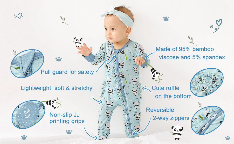 - REVERSIBLE 2-WAY RUFFLED ZIPPERS – Unzip our one-piece Pajamas from the top or bottom – perfect for late-night diaper changes, when you’re on the go or anytime you don’t want to fully undress your baby.
