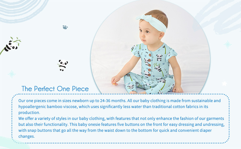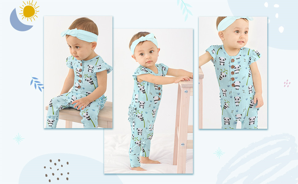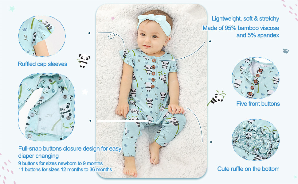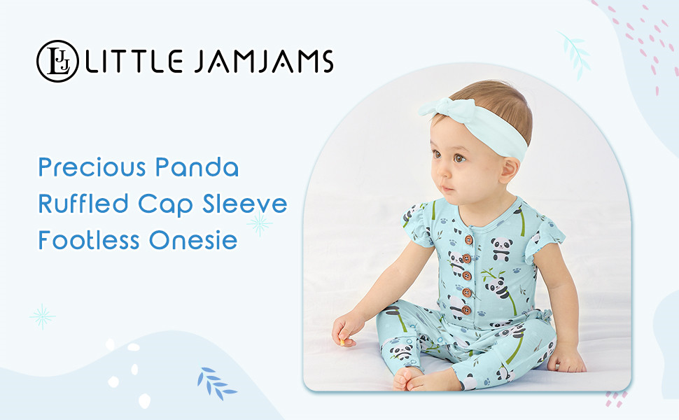 Precious Panda Ruffled Cap Sleeve Footless Button Snap One-Piece Onesie