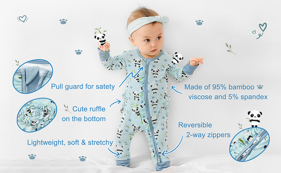 - REVERSIBLE 2-WAY RUFFLED ZIPPERS – Unzip our one-piece Pajamas from the top or bottom – perfect for late-night diaper changes, when you’re on the go or anytime you don’t want to fully undress your baby.
