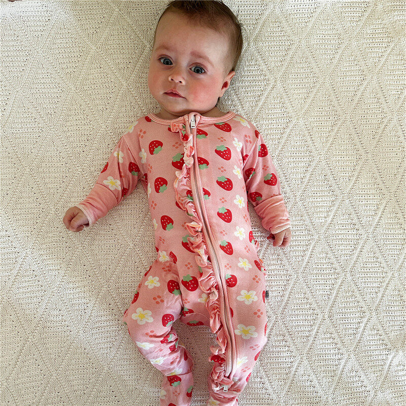 Strawberry Sweetie Footie Ruffled Zippered One-Piece Onesie