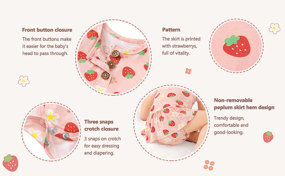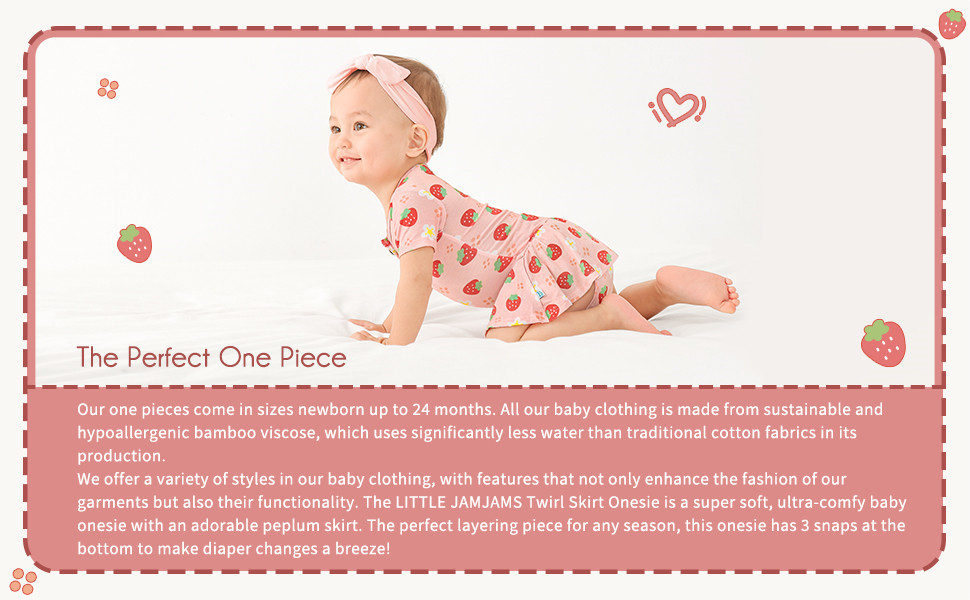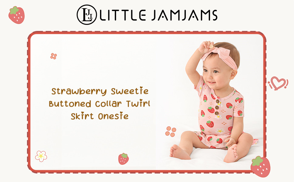 Strawberry Sweetie Twirl Skirt Girls Onesie With Buttoned Collar