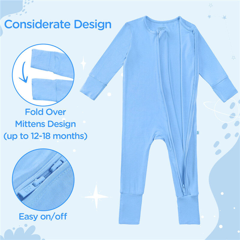 Notice The folding mittens cuffs on both hands available in sizes from newborn to 18 months, while the sizes from 18 months to 3T do not have this design. - REVERSIBLE 2-WAY ZIPPERS – Say goodbye to struggling with multiple buttons or snaps! Our one-piece design with a reversible zipper makes diaper changes and dressing a breeze. Perfect for busy moms on-the-go, this will quickly become your go-to outfit for your little one.