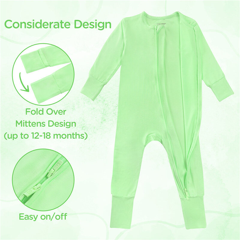 Notice The folding mittens cuffs on both hands available in sizes from newborn to 18 months, while the sizes from 18 months to 3T do not have this design. - REVERSIBLE 2-WAY ZIPPERS – Say goodbye to struggling with multiple buttons or snaps! Our one-piece design with a reversible zipper makes diaper changes and dressing a breeze. Perfect for busy moms on-the-go, this will quickly become your go-to outfit for your little one.