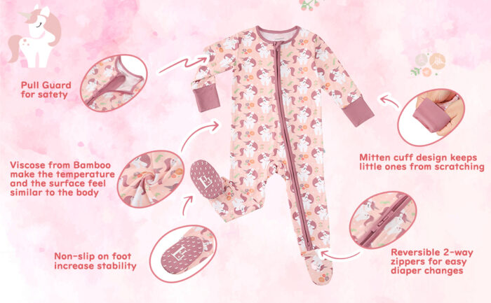 Unicorn Fancy Mittens Cuff Footie Baby Rompers Pajamas